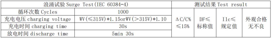 在 105℃环境中,按照规定时间连续加载额定电压后,待温度恢复到 25℃进行测量时,应满足以下要求.