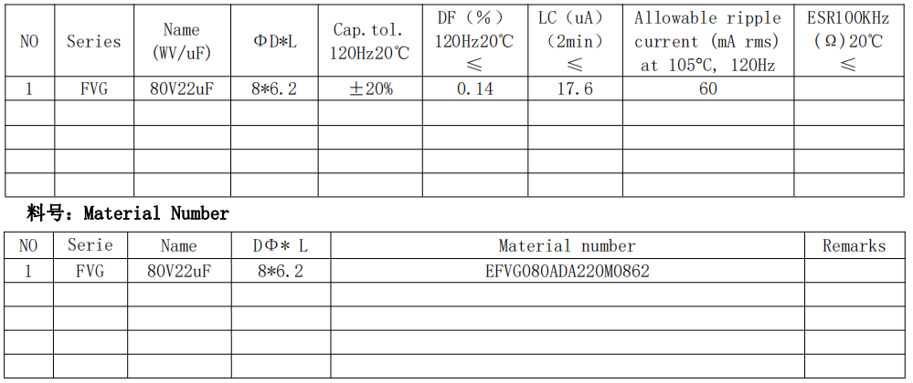 This specification covers “FVG Series” V-chip aluminum electrolytic capacitors.