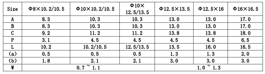 The following specifications shall be satisfied when the capacitors are restored to 25℃ after exposing them for 1,000 hours at 105℃ without voltage applied. Before the measurement, the capacitor shall be preconditioned by applying voltage according to Item 4.1 of JIS C 5101-4,Should meet the above durability of the standard value.