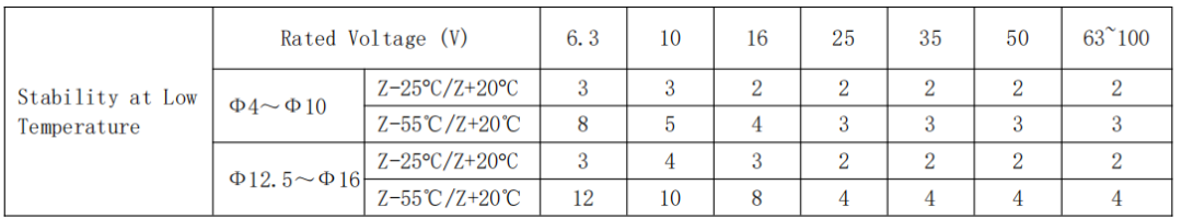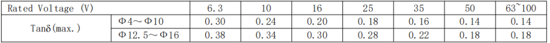 The following specifications shall be satisfied when the capacitors are restored to 25℃ after the rated voltage is applied for the specifiedperiod of time at 105℃, Should meet the following requirements